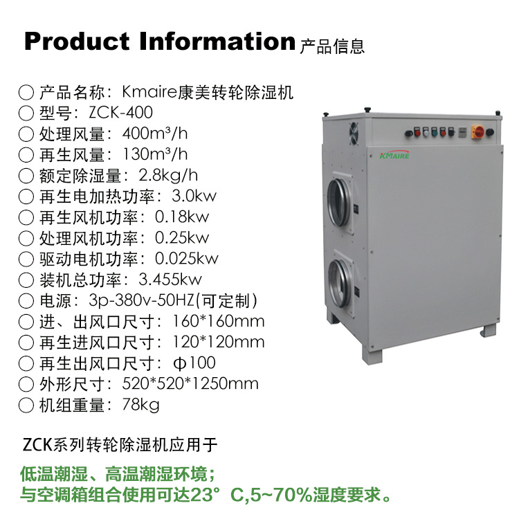 1.可精準地達到用戶要求的空氣含濕量,出風溫度由用戶自行控制。